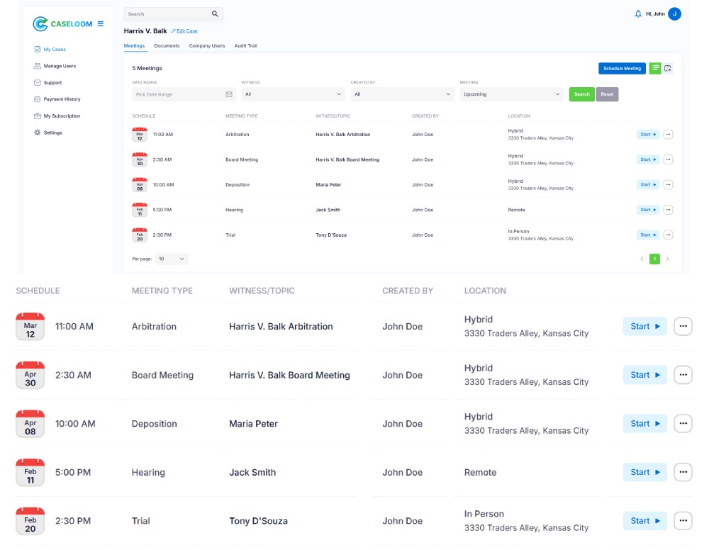 CaseLoom simplifies deposition workflows by combining case management, exhibit presentation, and secure video proceedings into one platform designed for litigation teams.